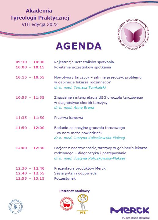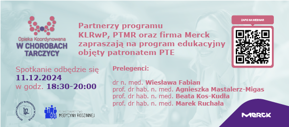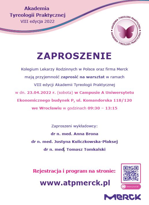 W imieniu Kolegium Lekarzy Rodzinnych w Polsce i firmy Merck miło mi poinformować o kolejnej, XI edycji Akademii Tyreologii Praktycznej pod patronatem naukowym PTE i PTT.